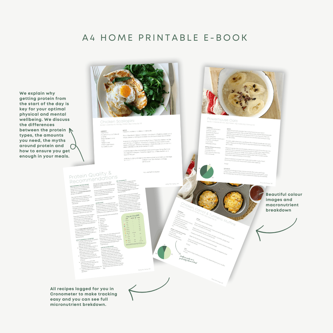 With our high-protein breakfast recipe book Forty over Forty, you'll never have to worry about what to make for breakfast again. Whether you're aiming to build muscle, lose weight, or simply improve your overall health, our recipes are designed to support your goals and make your mornings stress-free.